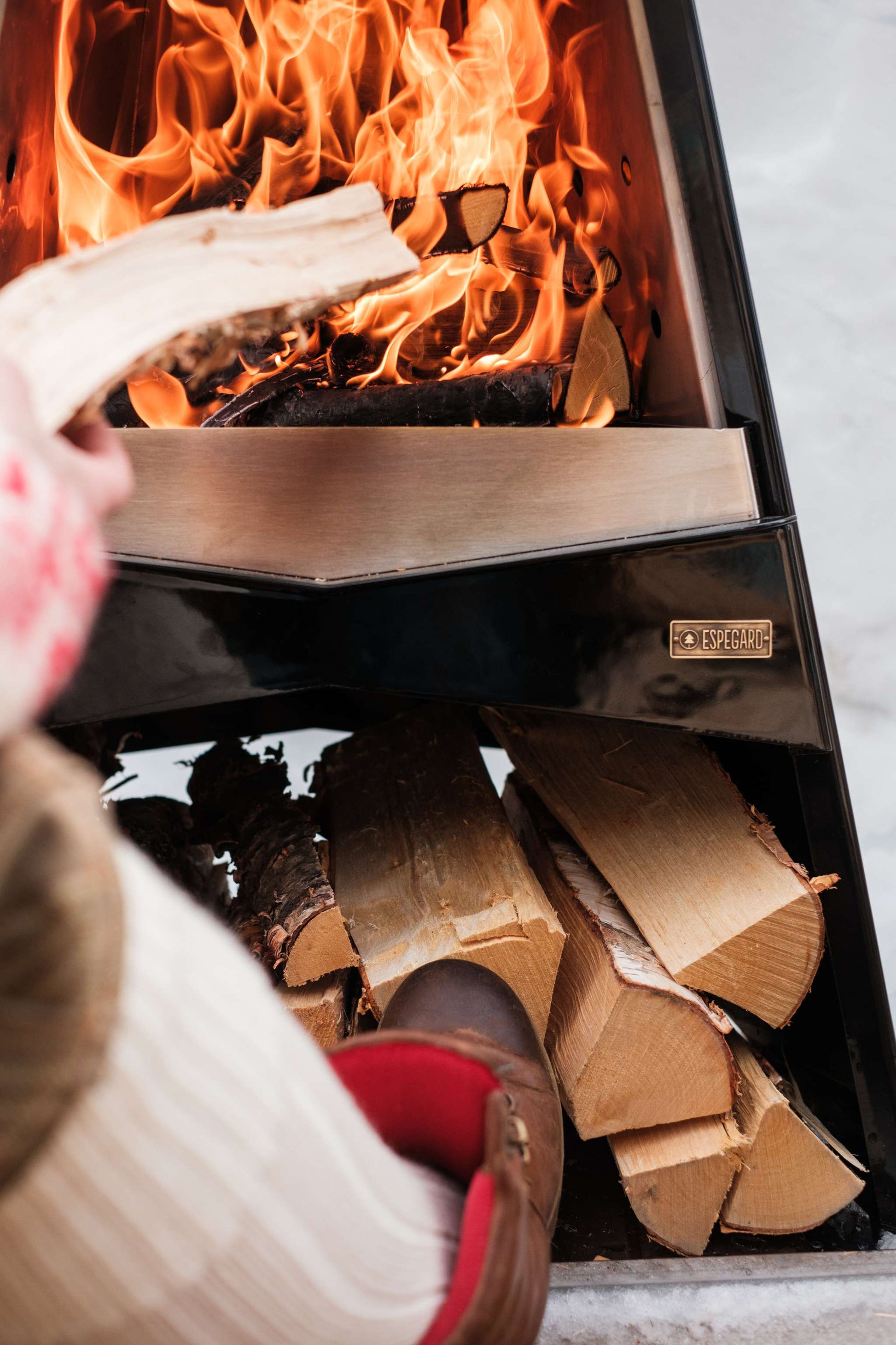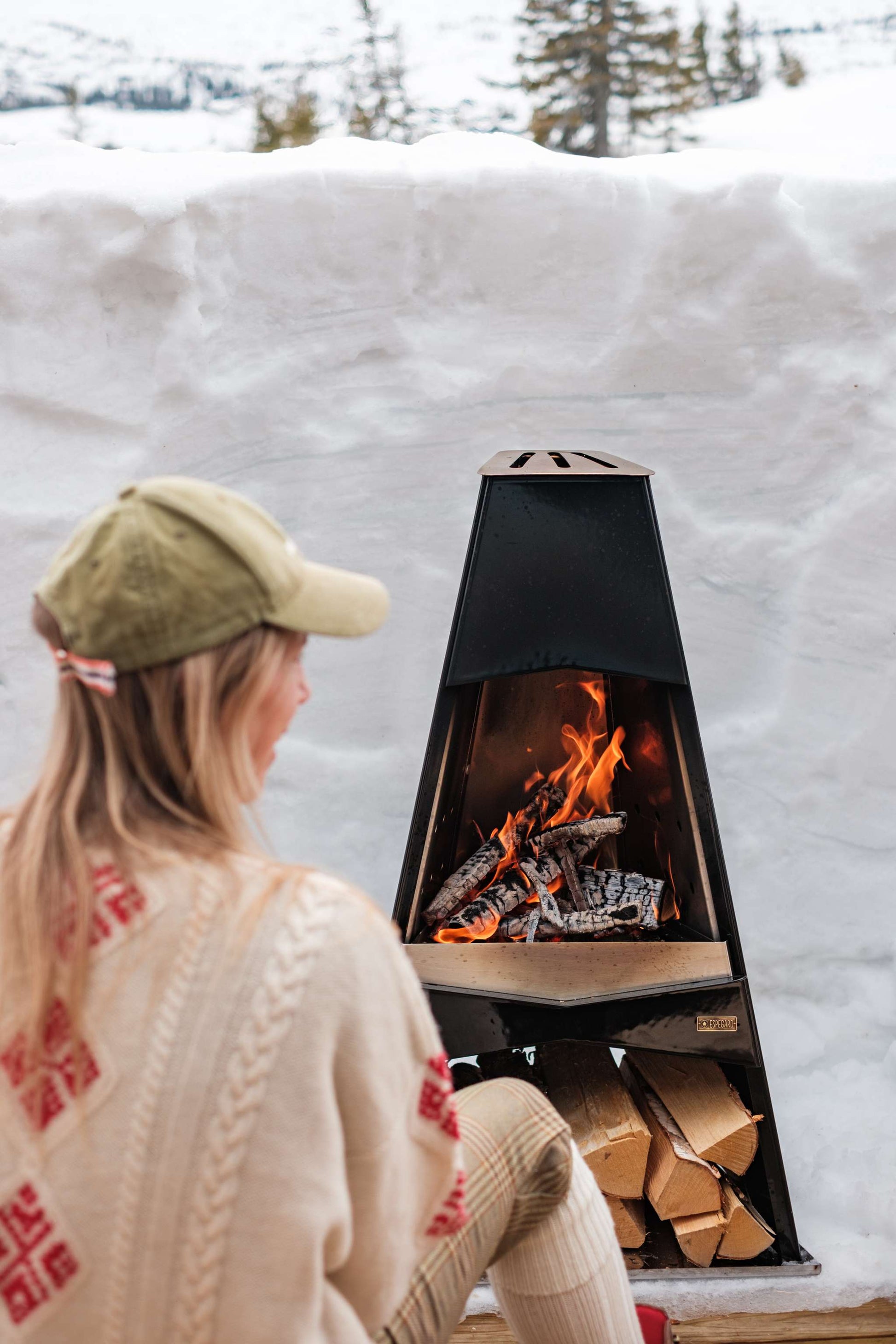 Vacker, rentbrännande eldstad för utomhusmys och enkel grillning med grillspett året runt. Tillverkad i svartemaljerat stål som tål höga temperaturer och skyddar vedkaminen mot fukt och rost. Rentbrännande modul i hela brännkammaren som ger vackra lågor, god värme och lite rök. Det mesta av den lilla rök man får försvinner genom toppen av kaminen. Bottengaller som enkelt kan tas ut. Vedkaminen levereras färdigmonterad, med gnistskydd i syrafast stål.