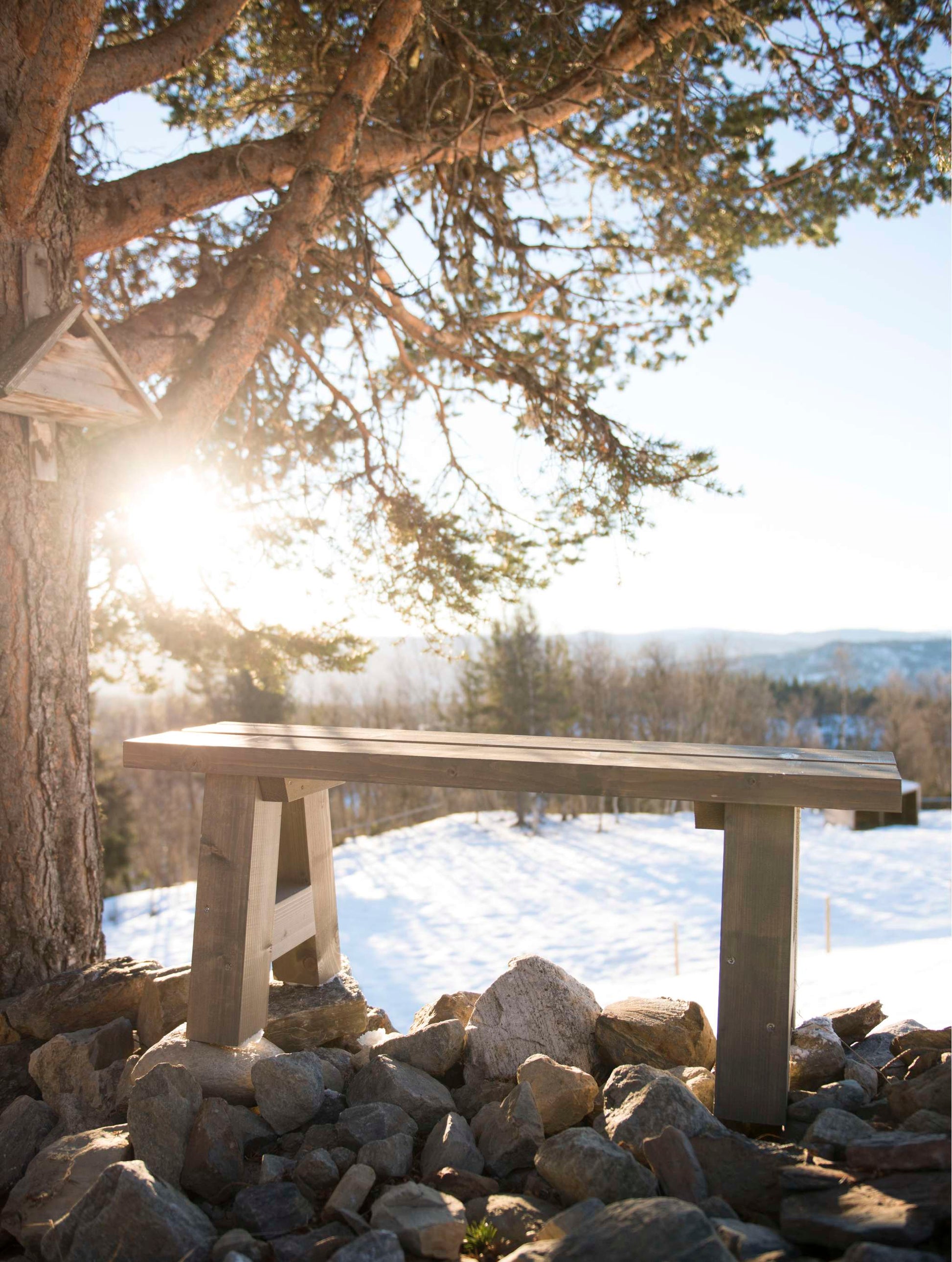 Stabil och robust bänk i gråbetsat trä som tål väder och vind. Passar perfekt runt bålpannan och andra eldstäder från Espegard.