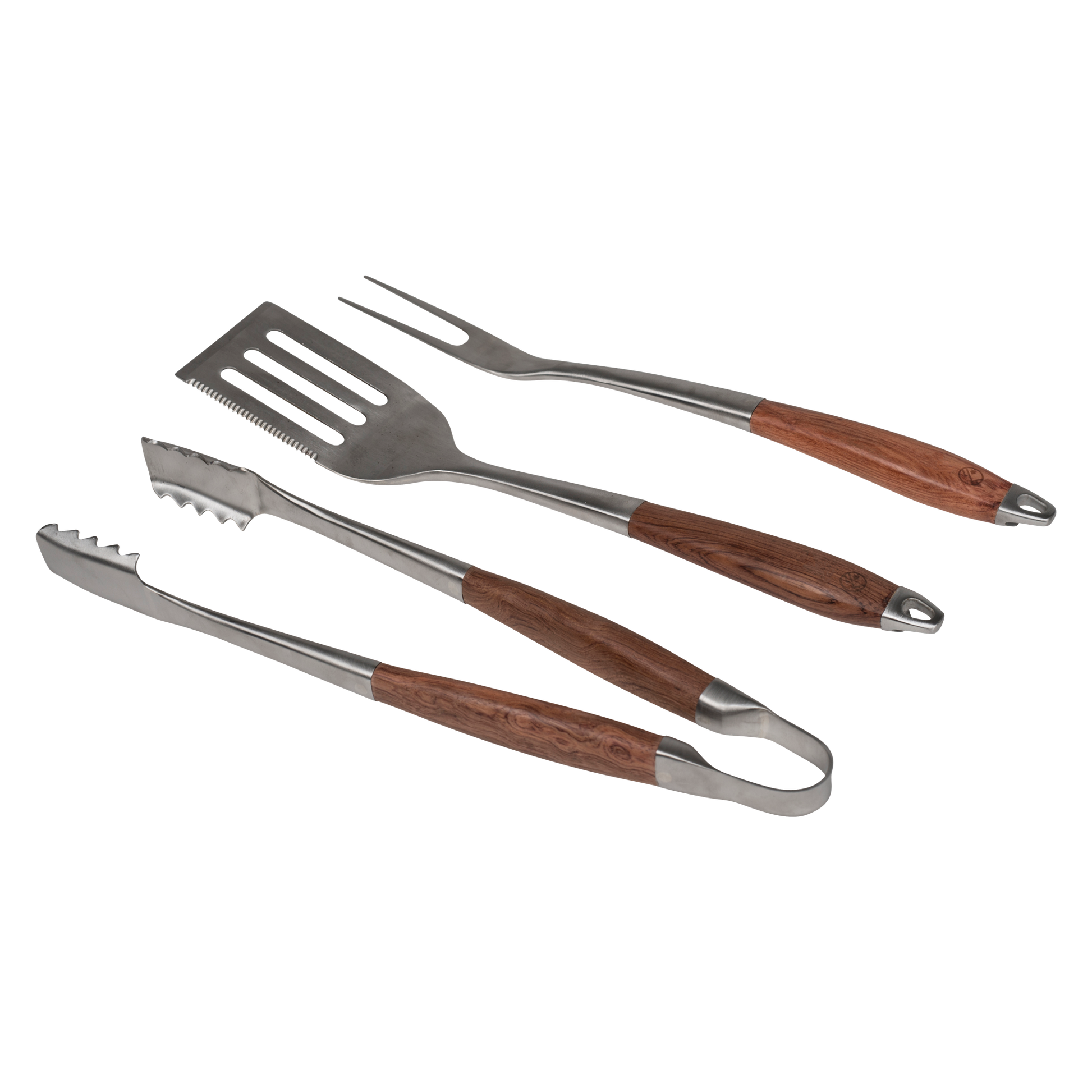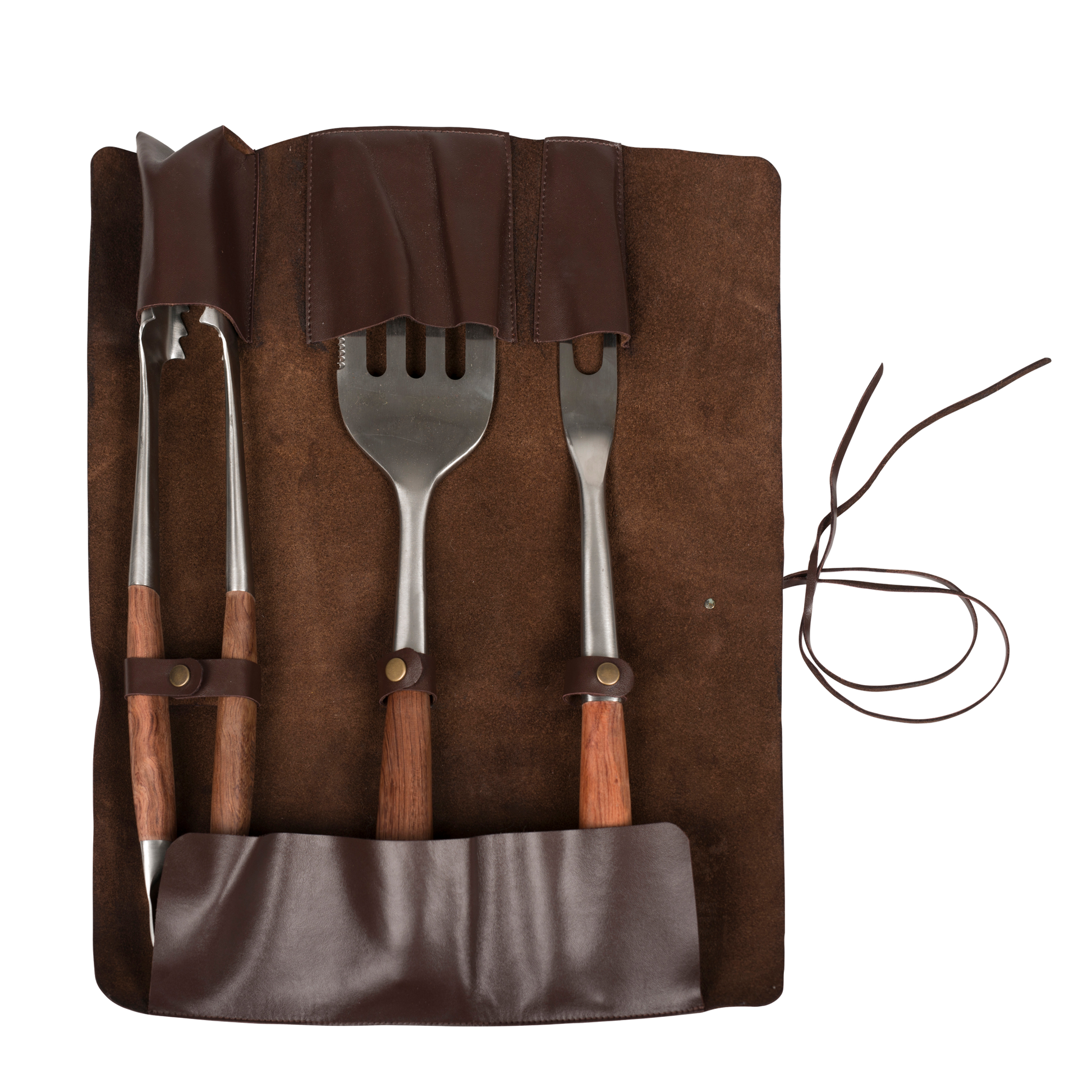 Espegard® Grillset är ett vackert och kvalitetssäkrat grillset i tre delar: ett grilltång, en stekspade och en grillgaffel. Alla delar är tillverkade av borstat rostfritt stål, vilket ger god hållbarhet och motståndskraft mot väderförhållanden. Handtagen är tillverkade av trä, vilket ger ett naturligt och bekvämt grepp. Setet levereras i ett vackert läderfodral som gör det enkelt att förvara och ta med sig.