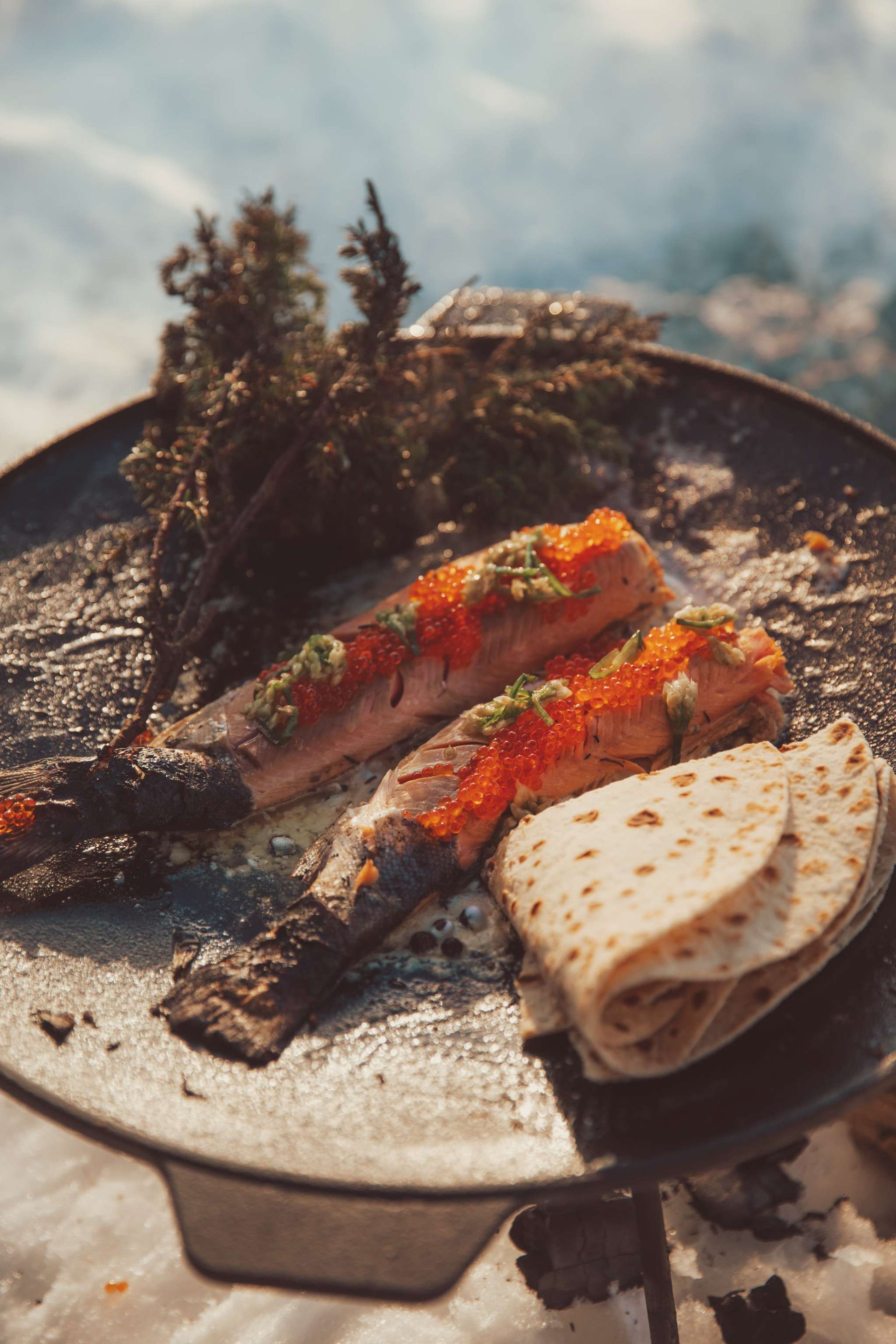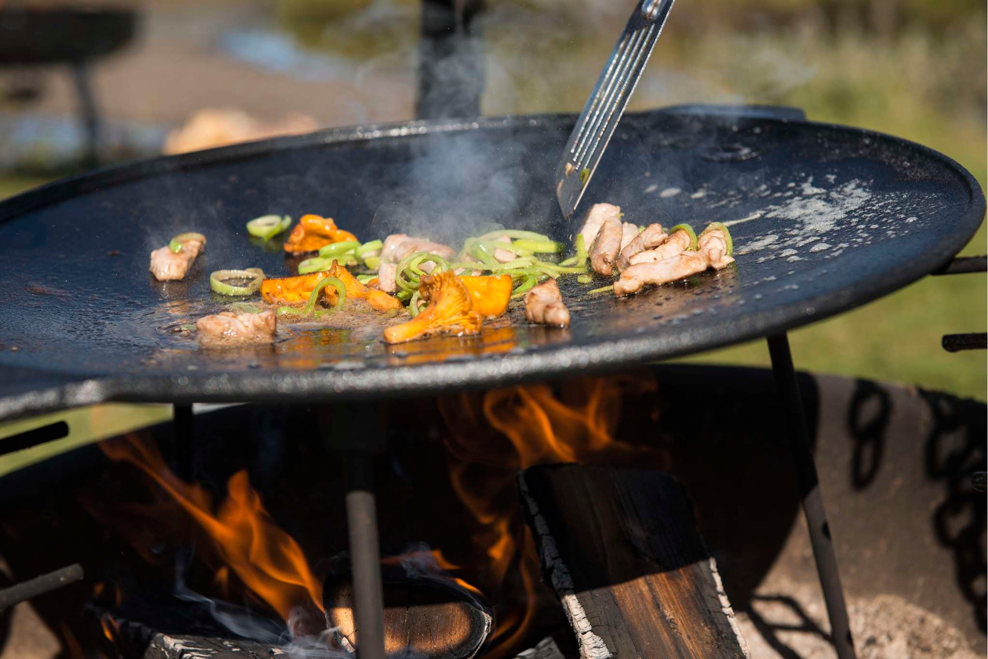 Gjutjärn är känt för sin hållbarhet och förmåga att behålla värmen. Det gör den idealisk för matlagning över en lägereld i vildmarken eller i en eldstad. Benen ger stabilitet och lyfter wokpannan över elden, så att du enkelt kan tillaga mat utan att behöva oroa dig för direktkontakt med lågorna. Du kan tillaga allt från saftiga biffar och rostade grönsaker till smarriga pannkakor och wokrätter. Benen skruvas på före användning.